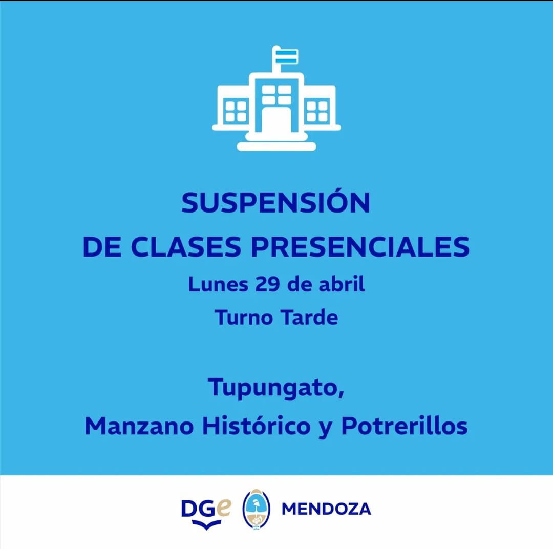 La medida es para los turnos vespertino y nocturno debido al viento Zonda. En el resto de la provincia, el servicio educativo se brinda con total normalidad.